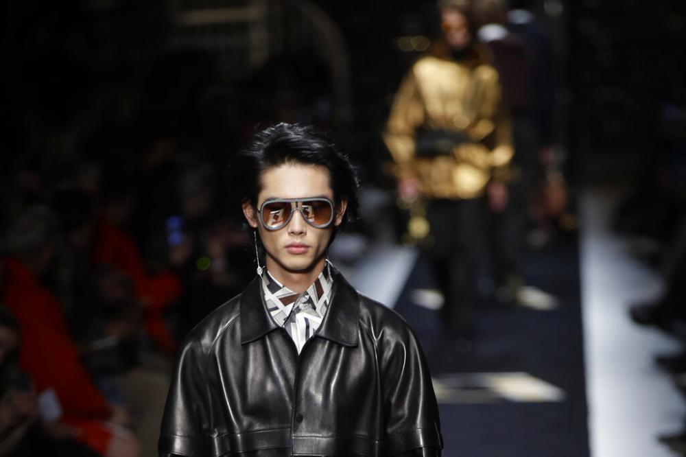 Fendi wants to entice younger adults into eschewing streetwear and dressing more formally. The brand's menswear collection designed with input from Karl Lagerfeld, featured suits in shiny materials, metallic accents on knitwear and sheer-collared shirts, and organza tuxedo jackets.