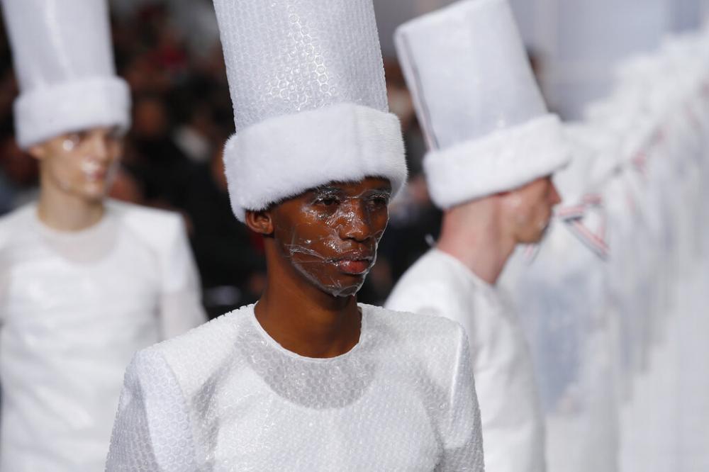 Little seemed to make sense in Thom Browne's gender-defying display but the sheer eccentricity of the proceedings somehow made it work. (Photos: AP/Francois Mori)