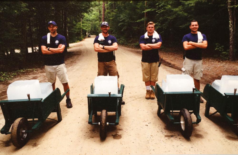 The group, equipped with chain saws, ice picks and a huge saw on a sled, can harvest 200 tons of ice over several days in a typical winter. They transport the ice to two storage sheds on the campgrounds, where it's kept until the summer. Then, staffers with wheelbarrows provide the ice to resort guests, who place it in an antique icebox — some dating back to the 1930s with oak exteriors and a tin or zinc lining — to keep beverages and snacks cold. Guests are told not to eat the ice, though some old-timers apparently still put a few shards in their cocktails.