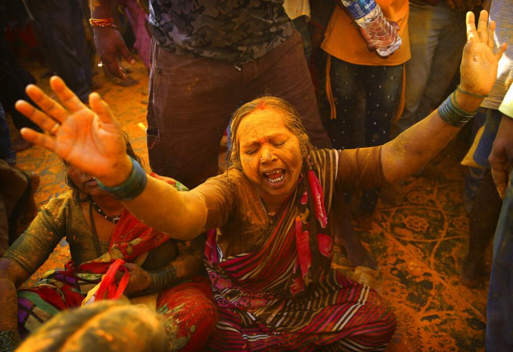 Then men take the statue of Khandoba from the temple and carry it to the river for a traditional bath as crowds try to touch the idol for a blessing.
