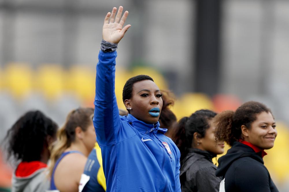 Berry raised her fist as America's national anthem was played to honor her win in the hammer throw. She called out injustice in America "and a president who's making it worse."