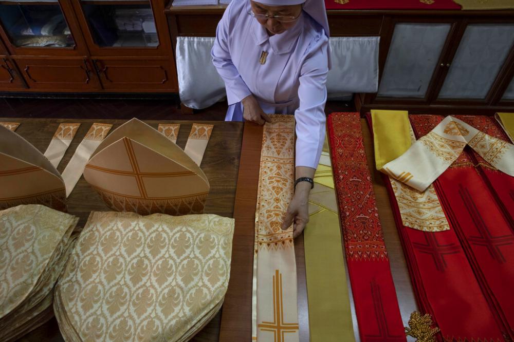 In a Catholic preparatory school, seamstresses from the Congregation of the Sacred Heart of Jesus Sisters of Bangkok are studiously snipping and sewing. They've been working tirelessly, running up the ceremonial garments Pope Francis will wear during his four-day visit to Thailand later this month.