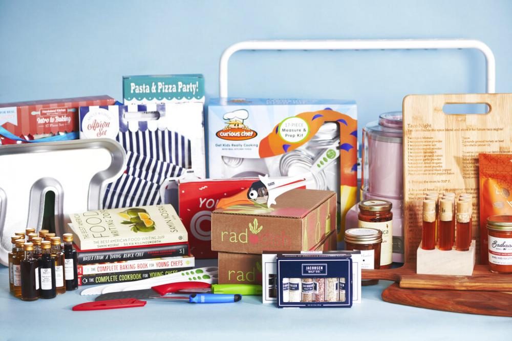 Raddish (think Rad Dish). Each month, a new kit arrives at your door filled with recipes, tools and activities that incorporate science, math, geography, language arts, nutrition and more. Comida Argentina and Family Date Night are two sample themes. The kits are designed by teachers and chefs for kids ages 4 to 14, and each includes three illustrated recipe guides, a cooking tool (such as a garlic mincer or kitchen timer), and other materials.