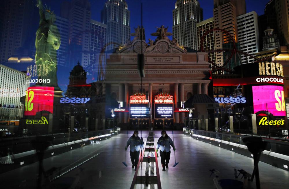 Instead of hosting throngs of visitors for one of the busiest seasons of the year, with March Madness drawing swarms to sportsbooks, or the now-scuttled plan to host the NFL draft this weekend, ferrying players in boats to a red carpet stage on the Bellagio lake, Las Vegas is trying to survive.