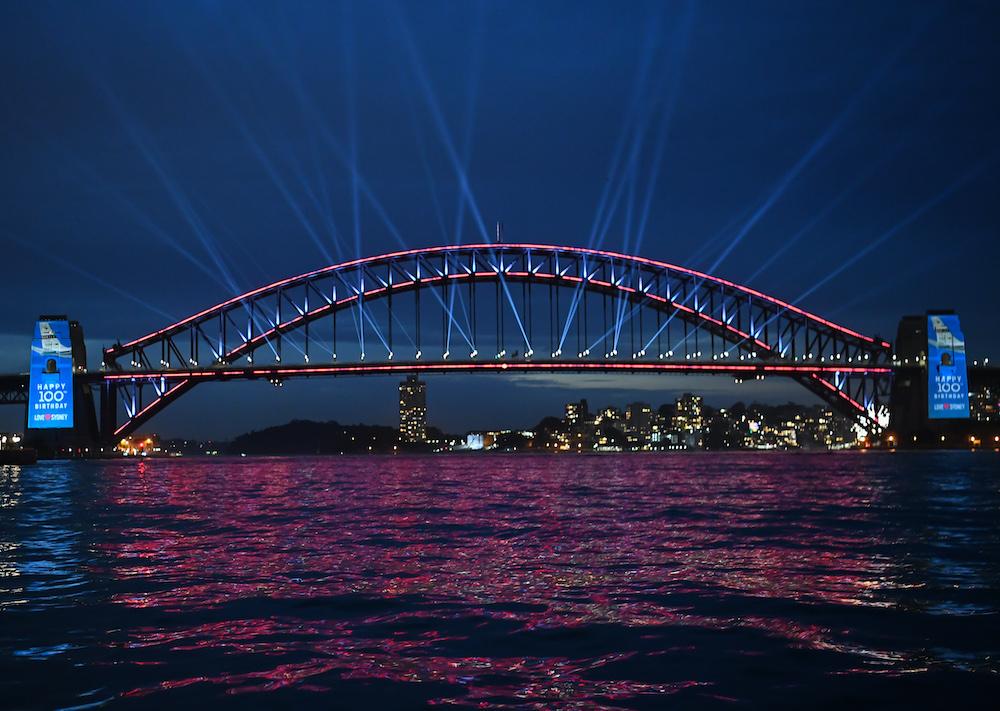 Sydney has commemorated Qantas Airways' 100th anniversary by lighting up its iconic Sydney Harbour Bridge as a larger-than-life birthday cake complete with illuminated candles that were blown out by a Qantas 787 as it did a low level overfly at 1,500 feet.