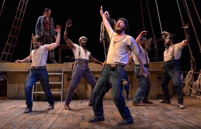 For an unreasonable portion of the show's running time, the crewmen toss gunnysacks, sing shanties, haze newbies, and dance jigs to no particular end. The tonal shift that follows is a disaster, like "Pirates of Penzance" colliding with "The Old Man and the Sea," or Broadway piling on to the Brooklyn Academy of Music.