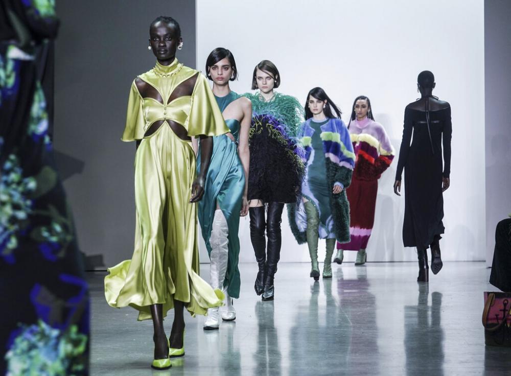 Gurung left behind the more political themes of some past collections for a dreamy travel vibe in Wednesday's show at Spring Studios in downtown Manhattan. The designer married dip-dyed prints and textiles from Nepal with a New York sensibility: plunging silky tops, form fitting mid-length dresses, and thigh-high boots.