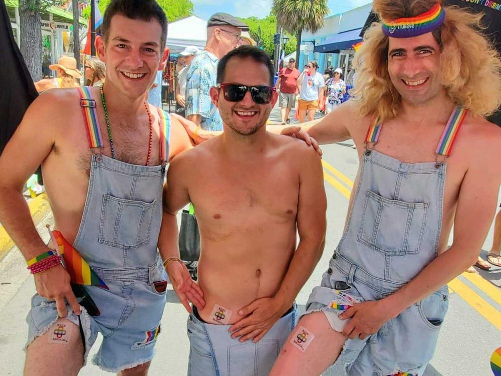 That's just one possibility, though. Booze Bandage can be worn visibly on your shoulder, say, to go along with that sleeveless T. It comes in a festive rainbow color, as well as in classic "first aid" red. Booze Bandage can be worn out and proud at any gay party, be it a Pride weekend get together, a Friday night at the club, or your buddy's wedding.