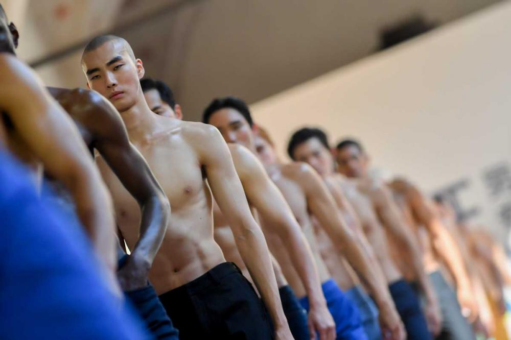 Shirtless models strode around the sunny courtyard of Milan's Sforzesco castle, the bare torso displaying how the trousers rested perfectly on the waist.