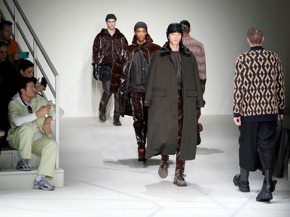 Models wear designs from the Emporio Armani collection in Milan on Saturday, January 14, 2023