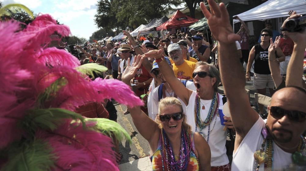 Hundreds of people line Central Avenue and cheer during the 10th Annual St. Pete Pride Street Festival & Promenade in St. Petersburg, Fla. on June 30, 2012.  (Source:Leah Millis/Tampa Bay Times via AP, file)