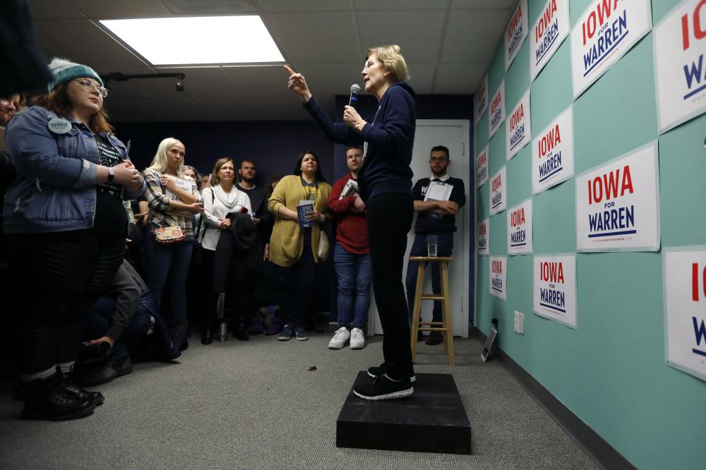 Many of the Democratic candidates looking to unseat President Donald Trump in 2020 are spending the last day of 2019 ringing in the new year with would-be supporters. Elizabeth Warren is marking her anniversary of forming a presidential exploratory committee with a speech at Boston's Old South Meeting House on Tuesday highlighting how she'd stamp out government corruption. The Congregational church is famous for being the organizing point for the Boston Tea Party in 1773.