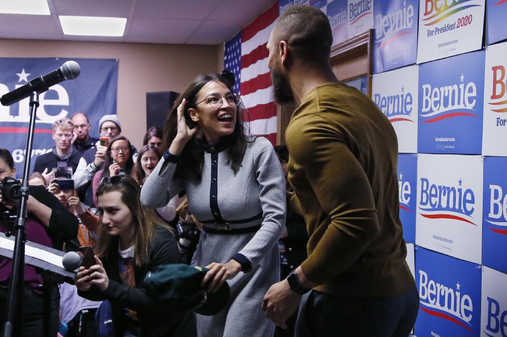 Ahead of his arrival in Iowa, Sanders sent progressive icon and New York Rep. Alexandria Ocasio-Cortez to the state. She addressed dozens of Sanders volunteers at one of his field offices inside a stirp mall, before heading out to canvass in Cedar Rapids. She promised to wear her green "Green New Deal" baseball cap to join them on a clear but cold Saturday, amid snow drifts that piled along plowed roads and melting ice.