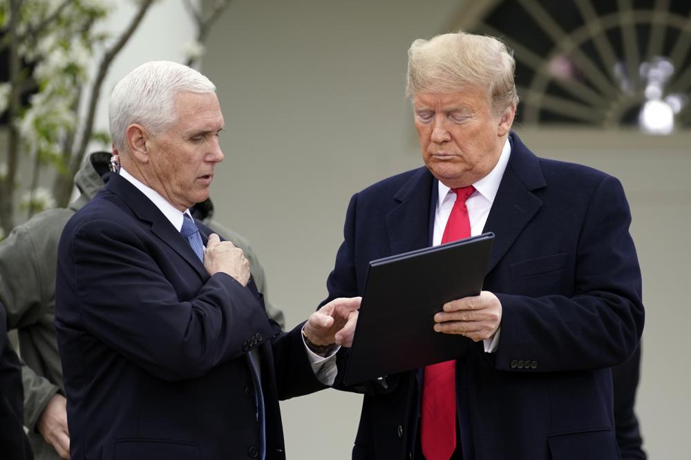 Appearing before the president at the virtual town hall, Vice President Mike Pence said Trump has asked for recommendations from the White House coronavirus task force for how he can send people back to work while minimizing the public health risk. He said Trump wants to find a way "to open America back up."