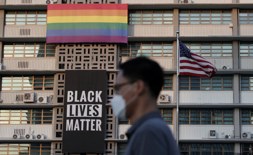 The official explanation from the embassy, which didn't mention an LGBT pride flag that was also removed from the building, was that the Black Lives Matter banner was removed to avoid any perception that it was meant "to support or encourage donations to any specific organization."