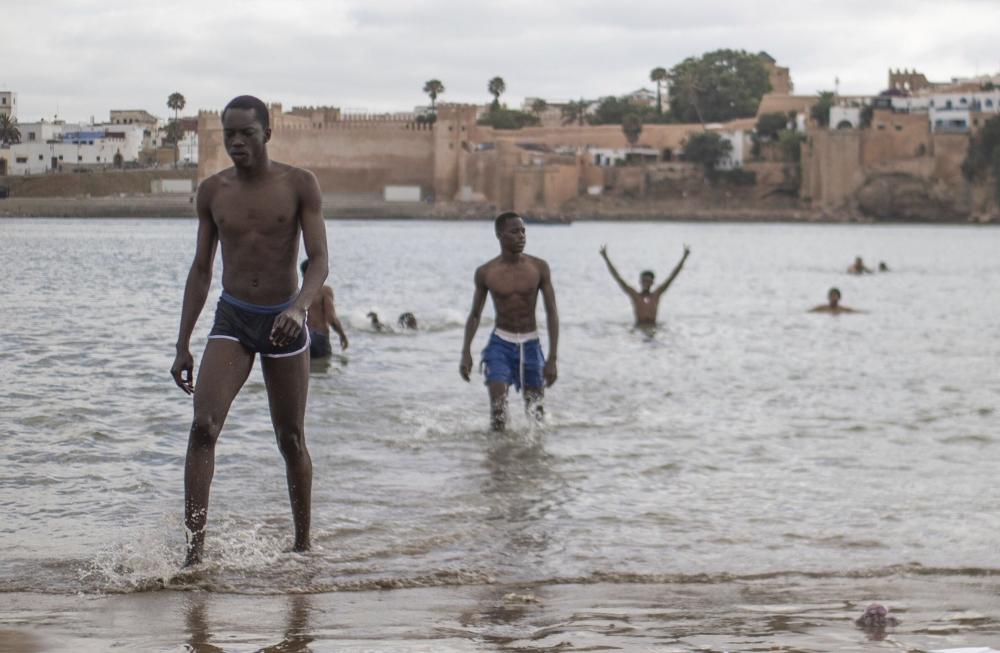 In the neighboring city of Sal�, teenagers and children gathered to cool off in the Bouregreg River.
