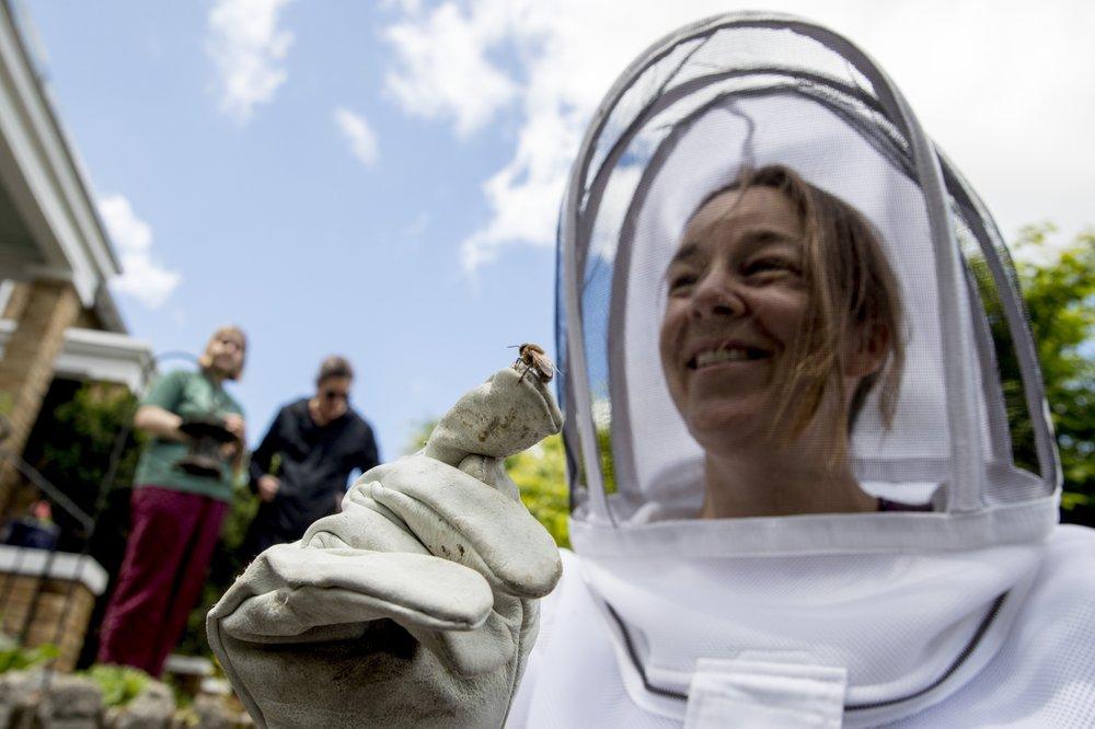 Even with the virus, seeing someone out on the street in a bee suit can cause people to stop and look. "We do look pretty funny and we are doing some pretty strange things," says Gleeson.
