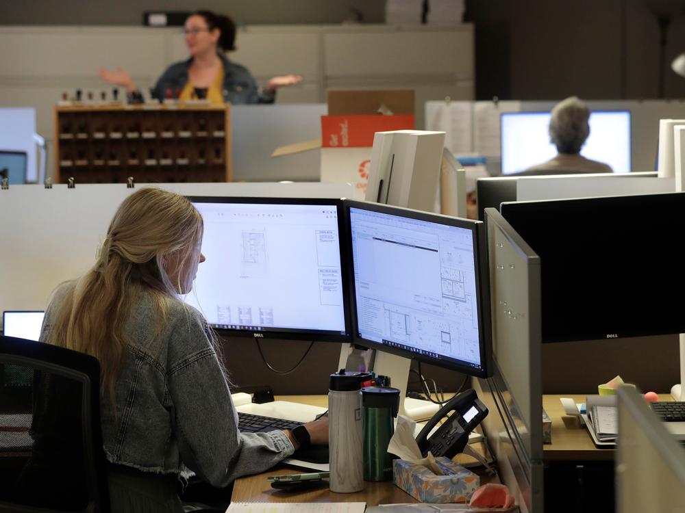 "The one-way paths take me a little out of the way, but it was easy to get used to," said Stephanie Jones, an interior designer with the company. "It actually gives me the opportunity to see more people and say a quick hello when I might have just walked directly to my desk before."