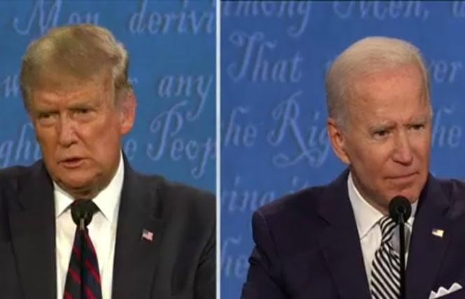 So far this cycle, in the first presidential and one vice presidential debate sanctioned by the Commission on Presidential Debates, not one question has referred to the queer community, noted Media Matters for America. This week's debate between Trump and his Democratic challenger, former vice president Joe Biden, was canceled after the president refused to participate in a virtual format despite having been recently infected with COVID-19; that leaves the one remaining faceoff next week.
