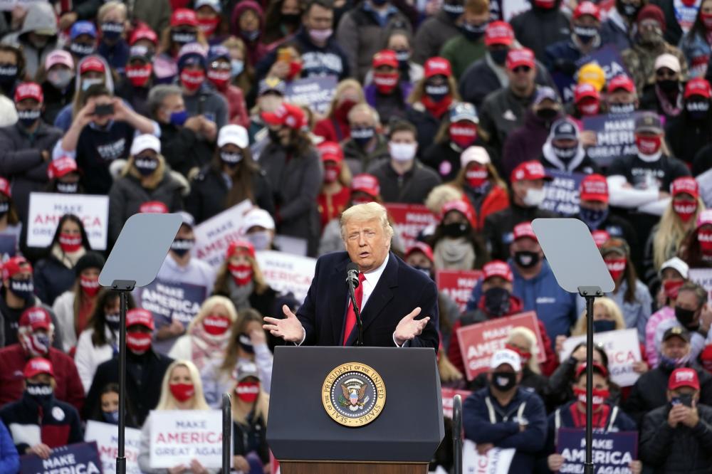 Trump is expected to hit nearly a dozen states in his last-ditch effort to recover ground from Democrat Joe Biden, including Sunday's trip to Maine and Tuesday's to Nebraska. Both states award electoral votes by congressional district and could be crucial in a tight election. He will hold 11 rallies in the final 48 hours alone.
