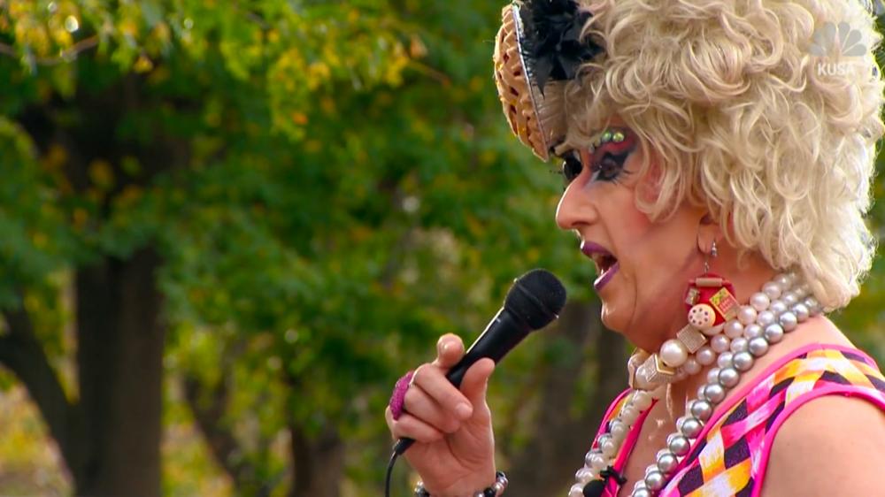 " 'For me, it's great, because I've got a live audience no matter how small. They are just starved for entertainment, because there is no live entertainment anymore,' he told KUSA. 'It's just a win-win for everyone. It makes them happy, it makes me happy — there's pie, and that makes people happy, as well.' "
