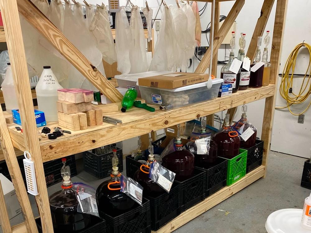 Photos released by investigators show glass containers, buckets, a fermenting rack and other equipment often used by people who make wine at home.
