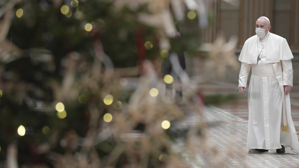 Francis prayed that the birth of Jesus would inspire people to be "generous, supportive and helpful'' to those in need, including those struggling with "the economic effects of the pandemic and women who have suffered domestic violence during these months of lockdown."