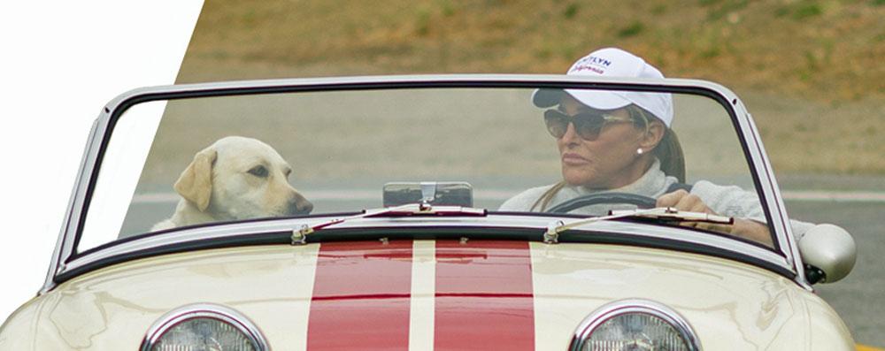 "Jenner's website features a collection of wine goblets, mugs, beverage coolers, hats, shirts, rally signs, yard signs and bumper stickers — each ranging from $15.00 to $36.00," reports Fox Business. "Part of Jenner's campaign logo features the Olympian driving an old school drop-top convertible coupe as her dog rides shotgun."