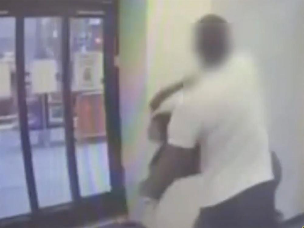 Security video released by the police show the victim had barely entered the store when the attacker, who was heading out of the building, suddenly swung at him, knocking him down.