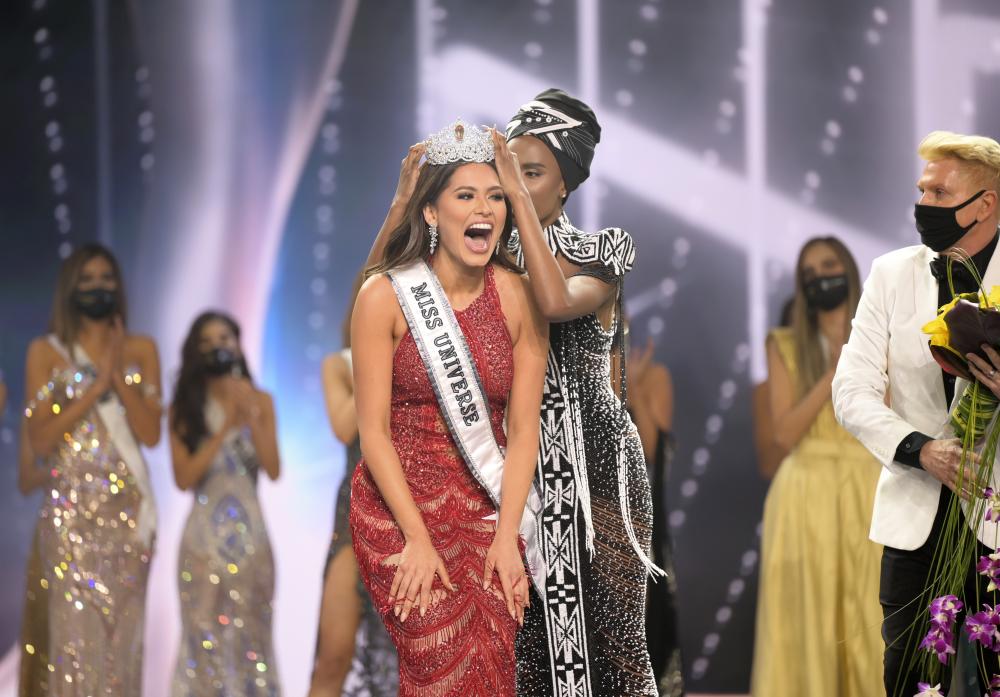 Previous winner Zozibini Tunzi fit the crown on Meza's head and waited to make sure it would stay in place as Meza beamed and took her first walk to the front of the stage.