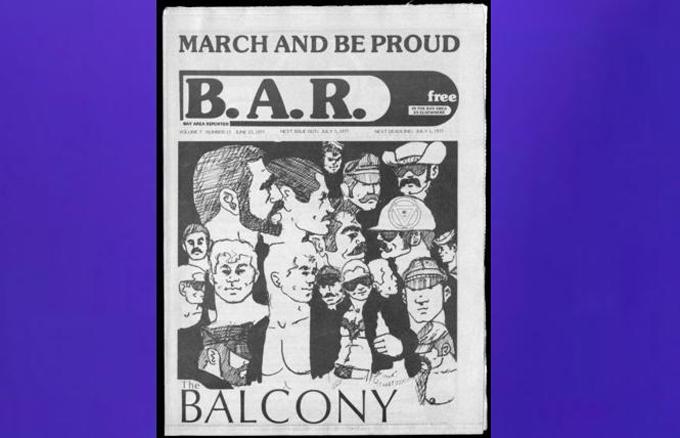 1977 had plenty of news and arts coverage when the Bay Area Reporter was still biweekly with 26 issues a year. But the illustrated cover, an ad for The Balcony bar, took a macho cartoonish focus with art by Chuck Arnett, who was known more famously for his mural on the wall of the Tool Box bar, which had been photographed for the groundbreaking 1963 Life magazine feature, "Homosexuality in America." Intended as a warning, it served as a magnet for many gay men.