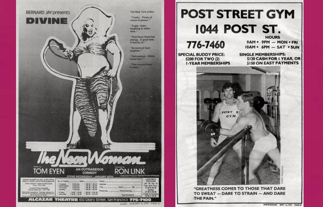 Indulge us with another treat with ads focusing on the intersection of muscularity and sexuality, as adult film stars Gordon Grant and Dan Wesling served as 'instructors' at the Post Street Club, and its after-hours members-only "Good Health Club," no doubt as an erotic lure for patrons caught up in the growing fitness trend, where apparently sex on premises was part of one's workout (August 2 and September 13).