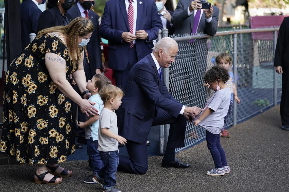 At the center, Biden promoted his proposal to make such care free for lower-income families, and ensure that families making up to 150% of their state's median income pay less than 7% of their salaries on child care. It's part of a massive expansion of the social safety net that Biden has championed and is aiming to pass with just Democratic votes in Congress.