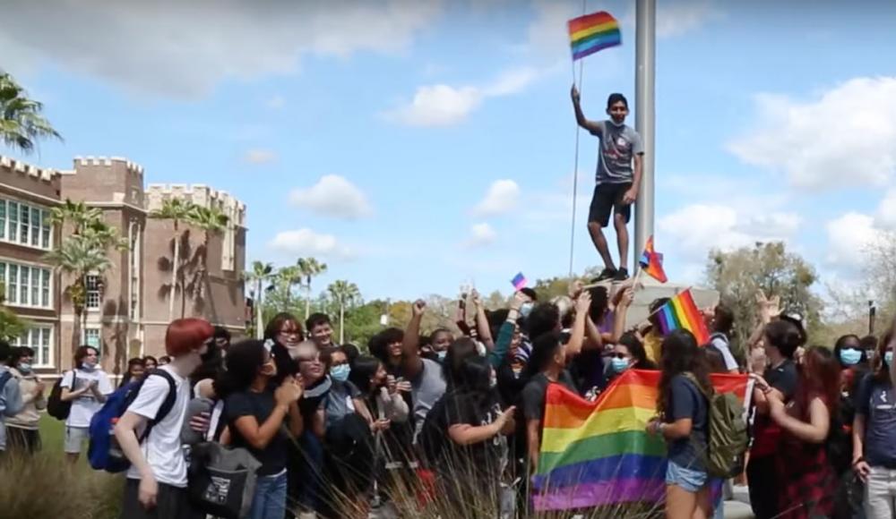 Florida students are proudly standing up for their beliefs and walking out in protest of the state's "Don't Say Gay" bill, which would criminalize classroom discussion of LGBTQ+ topics and paint a bull's eye on teachers by encouraging parents to file lawsuits.