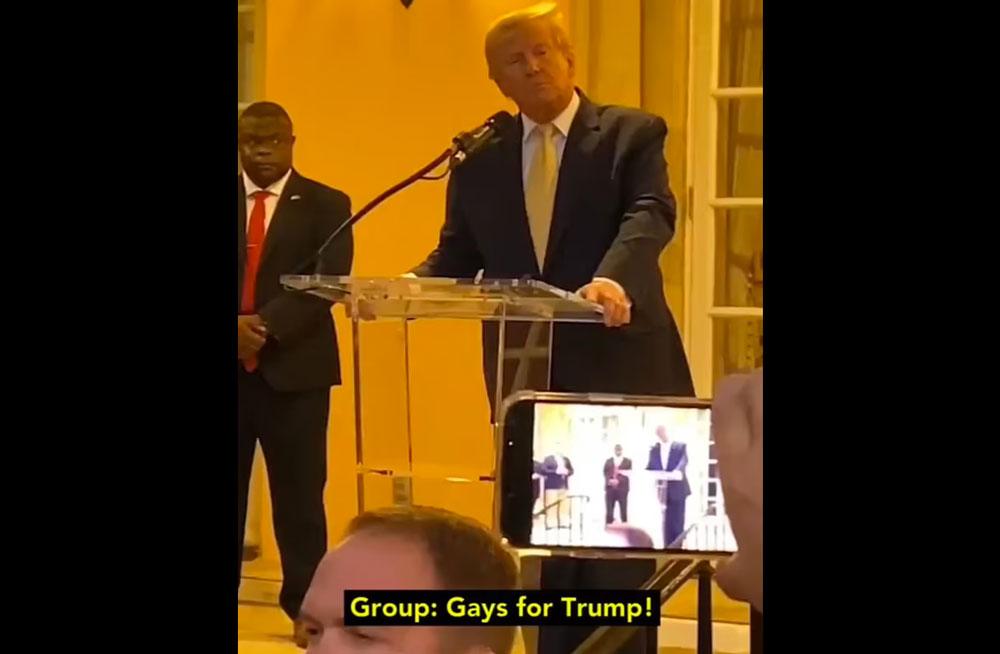 On Wednesday at a fundraiser at Mar-a-Lago, a person can be heard shouting 'Gays for Trump!' seemingly in reference to the pro-Trump�LGBTQ+�group of the same name, writes the Daily Mail.