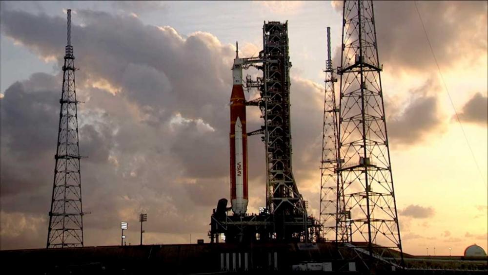 Earlier, nearly 1 million gallons of super-cold liquid hydrogen and oxygen were loaded into the 322-foot (98-meter) rocket known as the Space Launch System, or SLS.