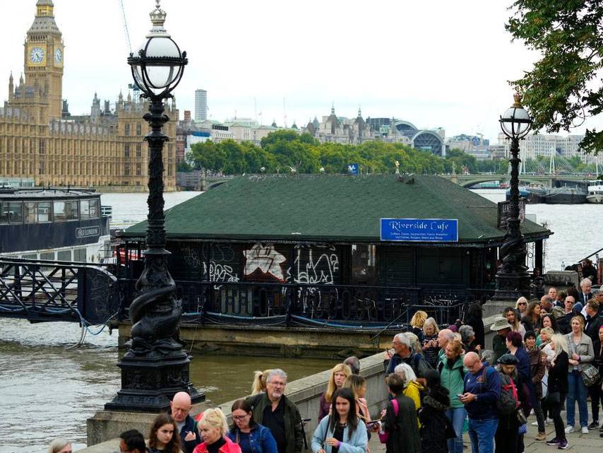 On the Thames, the Riverside Cafe that's next to the mileslong, round-the-clock line for people to get a glimpse of the queen's coffin, has been "extremely busy," manager Zab Istanik said. He's been opening two hours earlier than normal, at 7 a.m.