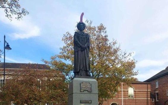Vandals Top Margaret Thatcher Statue with Pink Adult Toy