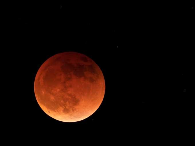 Known as a blood moon, it will appear a reddish-orange from the light of Earth's sunsets and sunrises. At the peak of the eclipse, the moon will be 242740 miles (390,653 kilometers) away, according to NASA scientists. Binoculars and telescopes will enhance viewing, provided the skies are clear.