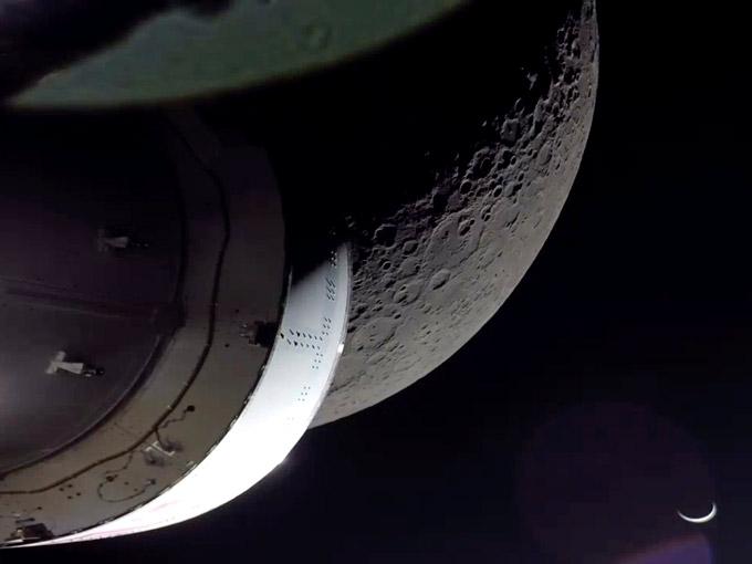 Once emerging from behind the moon and regaining communication with flight controllers in Houston, Orion beamed back photos of a close-up moon and a crescent Earth — Earthrise — in the distance.