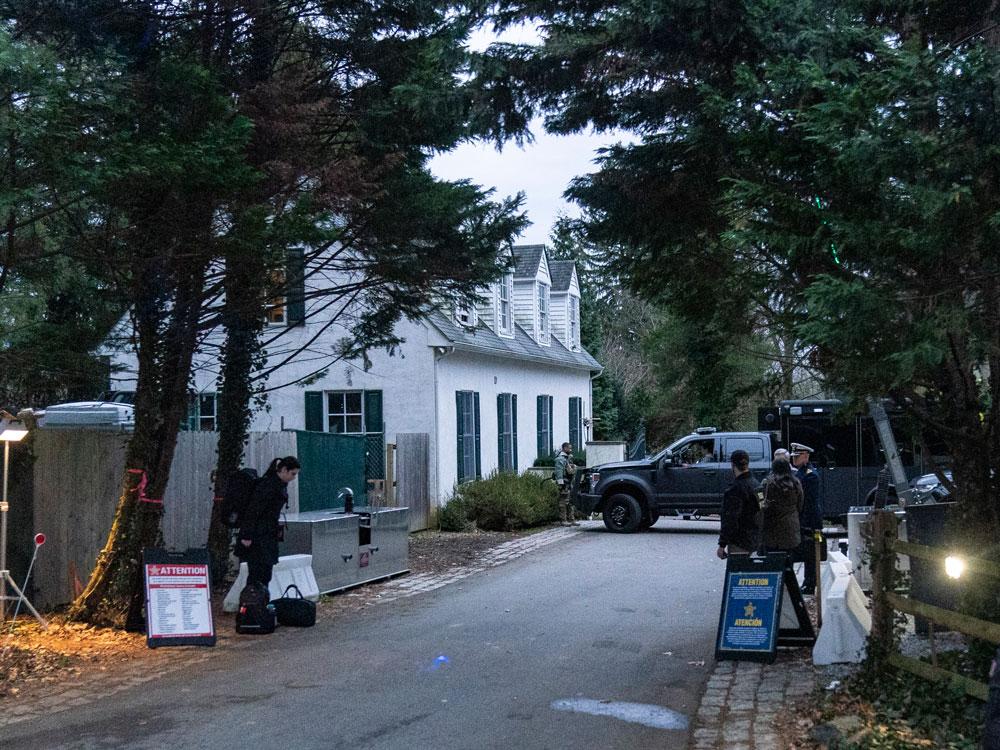 The access road to President Joe Biden's home in Wilmington, Del., is seen from a media van on Jan. 13, 2023. The FBI searched Biden's home in Wilmington, Del., on Friday, Jan. 20.