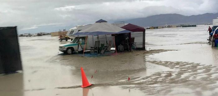 On their website, organizers encouraged participants to remain calm and suggested that the festival is built to endure conditions like the flooding. They said cellphone trailers were being dropped in several locations Saturday night and that they would be briefly opening up internet overnight. Shuttle buses were also being organized to take attendees to Reno from the nearest town of Gerlach, a walk of about five miles (eight kilometers) from the site.