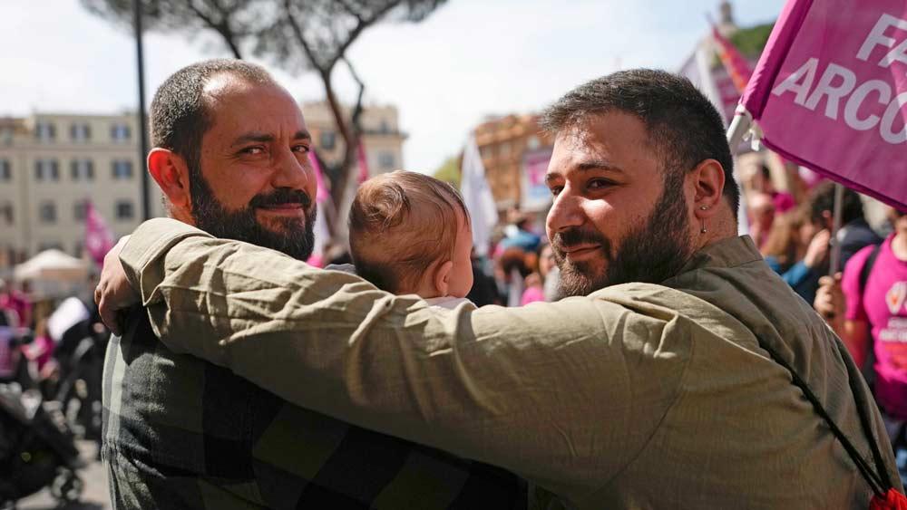 As the conference was getting underway, Italy's main gay family advocacy group, Rainbow Families, sponsored a pro-surrogacy counter-rally nearby. The aim was to also voice opposition to proposals by Italy's hard-right-led government to make it a crime for Italians to use surrogates abroad, even in countries where the practice is legal.