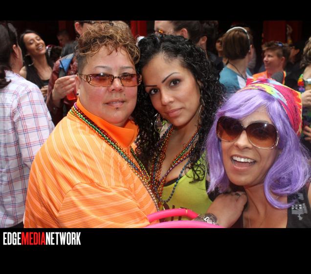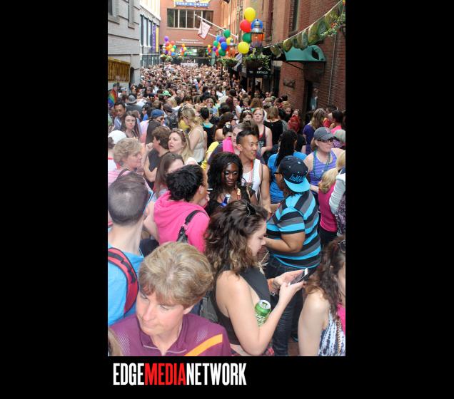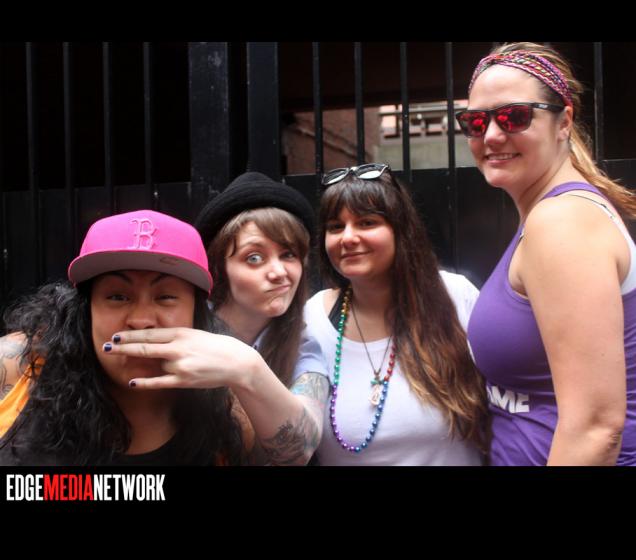 Pride fun continued at the ESME Block Party where the alley by the Mass. Transportation Building was jammed to capacity with partying gay women (and some men).