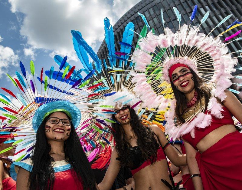 Revelers from across the country and abroad were parading through Berlin on Saturday from chichi Kurfuerstendamm street in the west to the city's landmark Brandenburg Gate.