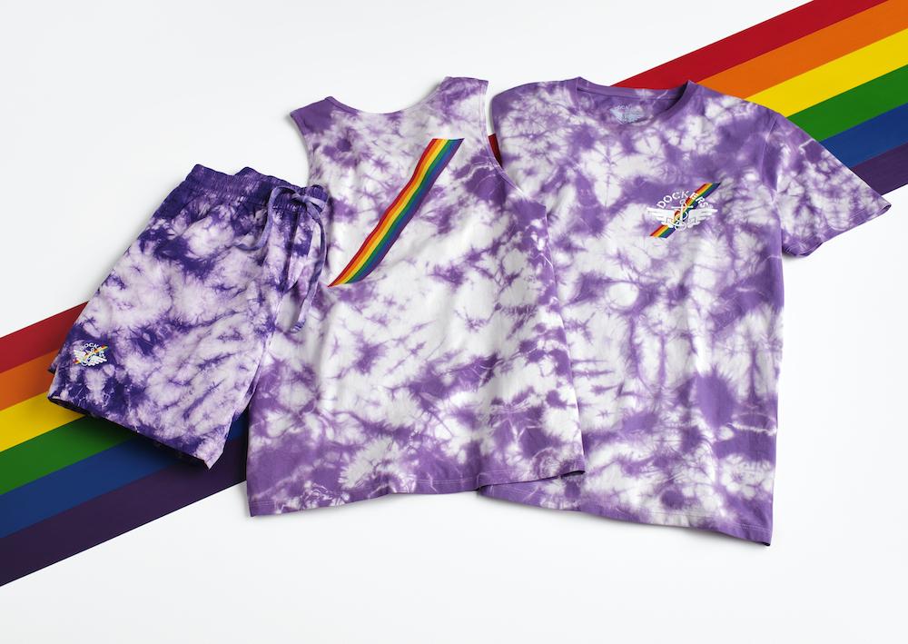 The Dockers 2020 Pride Collection features three unisex styles: a tank top and T-shirt — both 100% cotton — and rip-stop cotton, drawstring shorts. Offered in a distorted tie-dye print in bright purple colorways, each product features the Dockers 1986 logo with diagonal rainbow detail.