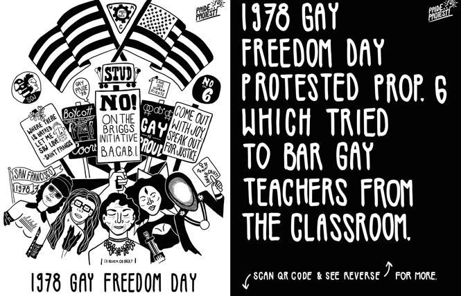 Whether you're planning to participate in the June 28 march or watch online events, a stroll or ride up or down Market Street is worthwhile to take in artist Win Mixter's series of Pride history works on multiple bus stops.